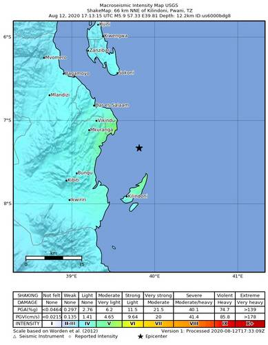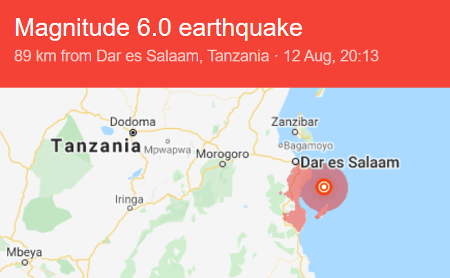 Reaching a 6 on the open ended Richter Scale is the quake indeed one of the strongest and the location, some 93 kilometres south east of Dar es Salaam and 66 kilometres north east of Kilindoni in the Indian Ocean caused fear among affected people, many of whom were reportedly running out of their buildings on the mainland.
