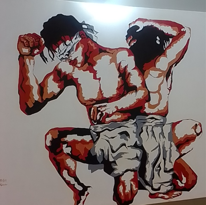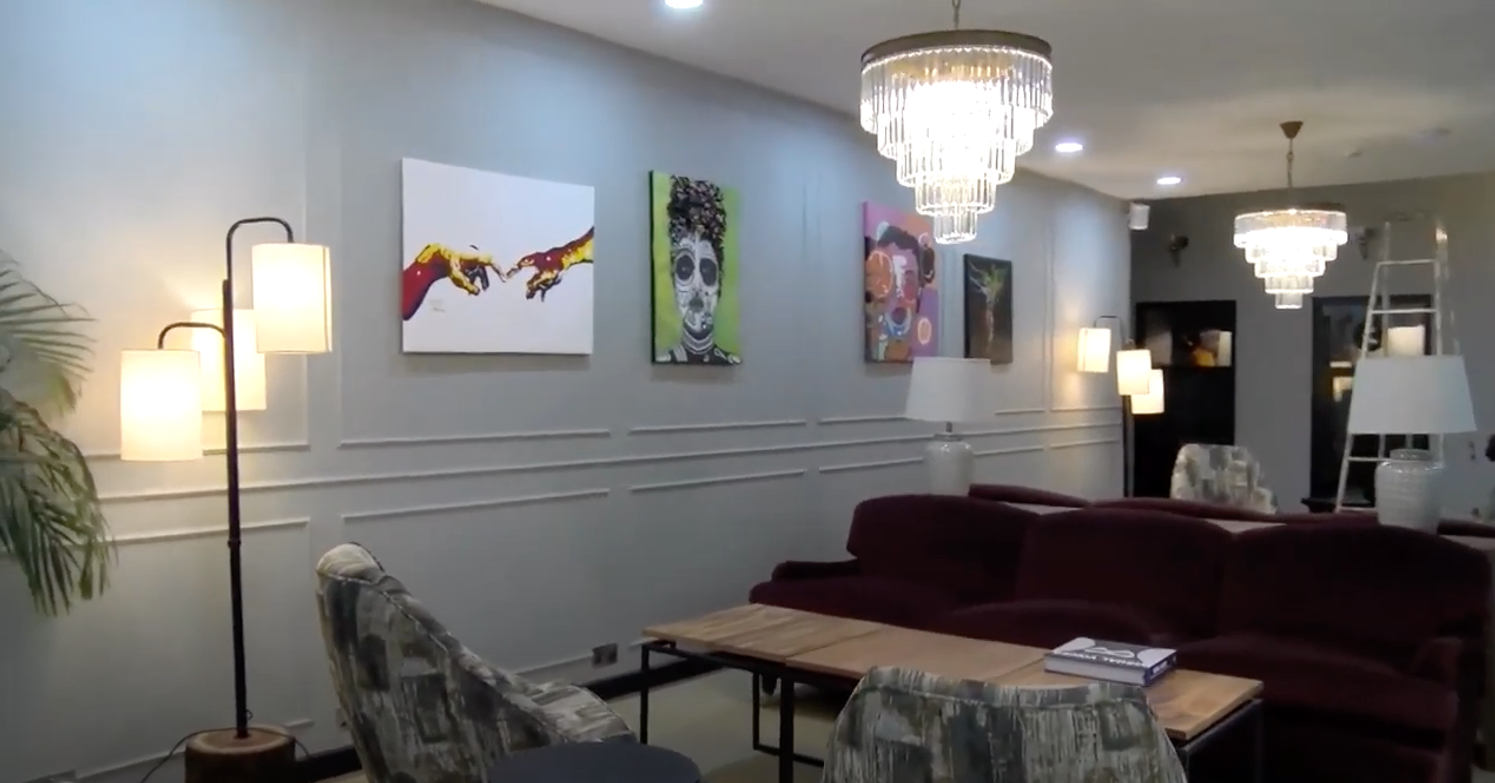 Here on the 7th floor of 9 West, banished to the corners are the blank office walls, replaced instead with lush green plants and lime candy-stripe wallpaper, a Prussian Blue reception with a magnificently gravitas chandelier made of tiny ebony warrior figures all rising up in a whirlpool to defend the light. Artwork from UWEZA (meaning WE CAN) gallery in Kibera former slums adorns the walls, bought from a collective of young neighborhood artists ranging from ages 13-27, male and female, to whom all 60% of individual sales proceeds come back to, and the remaining 40% going towards replenishing the gallery’s stock and materials, enabling more interested artist to find market for their work and pay school fees for themselves. We shall meet them in the next episode.