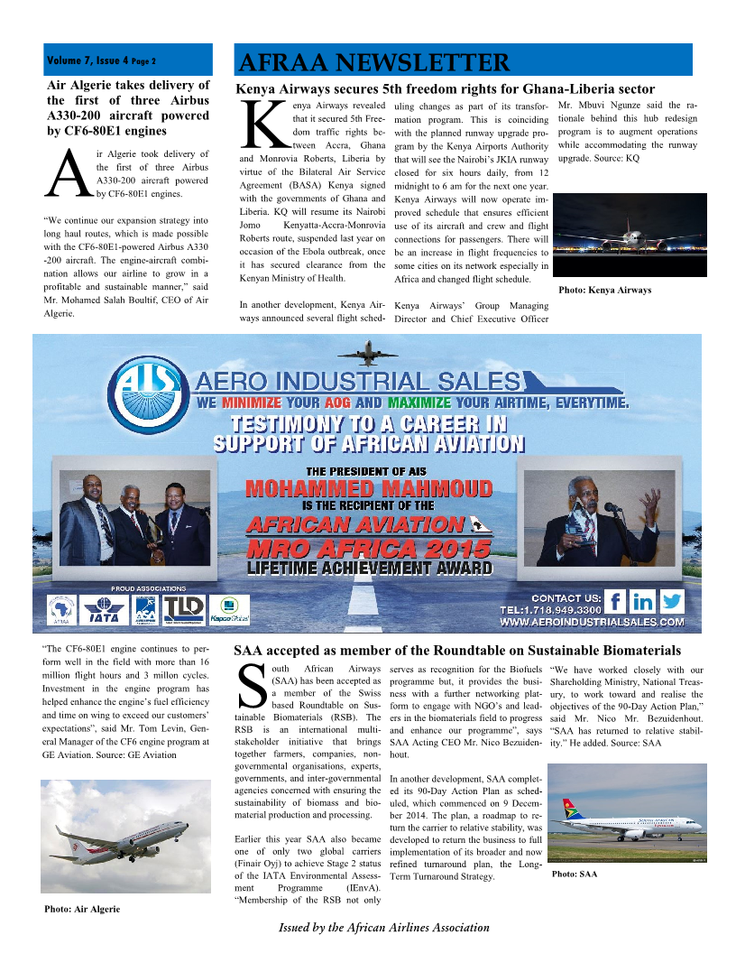 AFRAA, the African Airline Association based in Nairobi, regularly gives overviews on the state of the aviation industry and their latest newsletter has just been released and, with their permission, is reproduced here:
