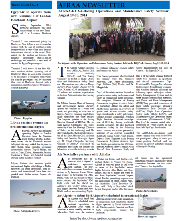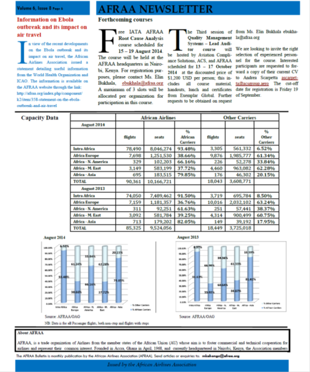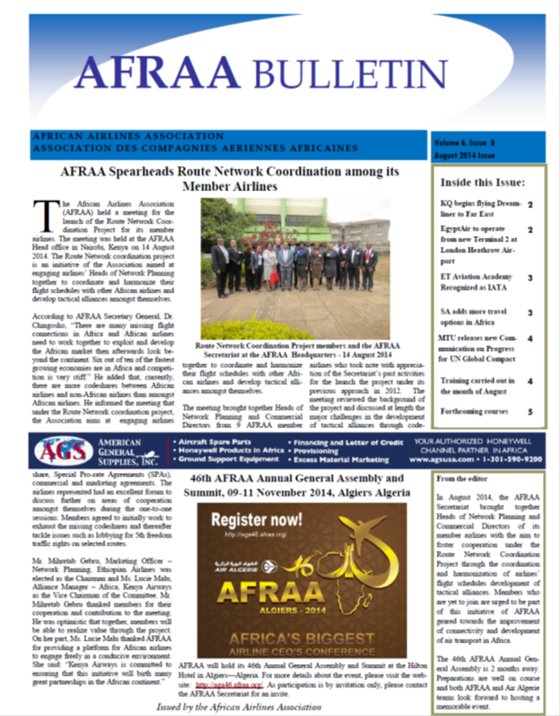 The African Airline Association, in short AFRAA, has just published their latest bulletin which is rich in aviation content and provides information otherwise hard to obtain.