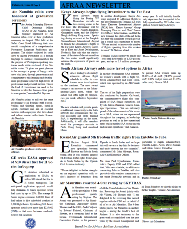 AFRICAN AVIATION NEWS GALORE AS AFRAA PUBLISHES THE LATEST NEWSLETTER