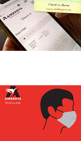 We would like to emphasize that we require all our customers to check-in online at www.airkenya.com. This promotes contactless service at our terminal, minimises queues at the boarding lounge and would save you a lot of time. We recommend all our partners – tour operators and travel agents to ensure that all passengers booked by them are checked in before dropping them off at the terminal.