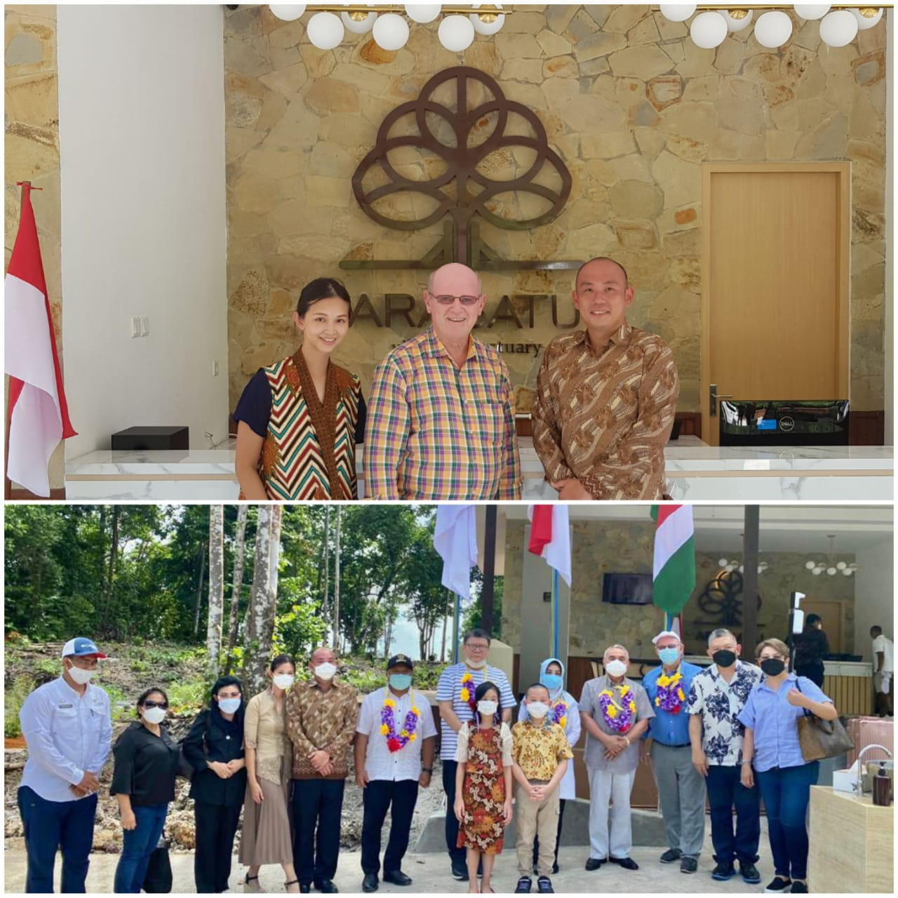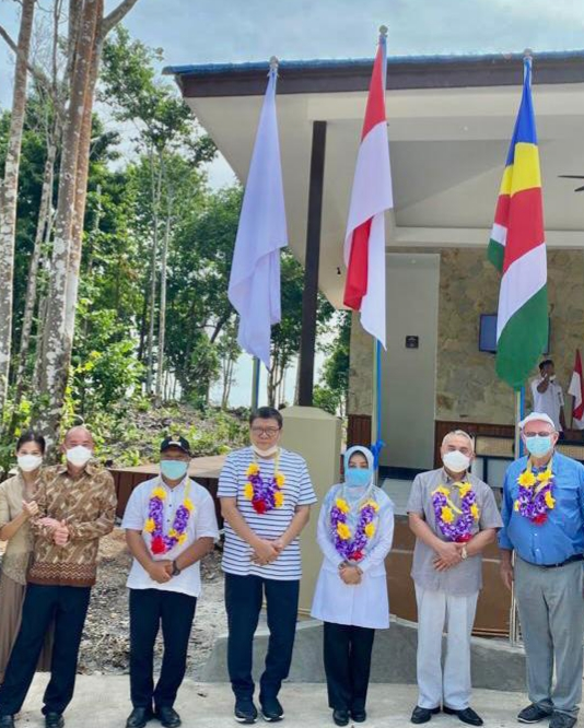 The Governor of Kalimantan Timur, H.E. Dr. Ir. H. Isran Noor, M. Si., the Bupati (Local Premier) of Kabupaten Berau, Hj. Sri Juniarsih Mas and their tourism department delegations were joined by H.E. Nico Barito, the Seychelles Special Envoy to ASEAN and Alain St.Ange, the Secretary General of FORSEAA (Forum of Small Medium Economic Africa Asean) to mark the formal opening of the Arasatu Villas & Sanctuary on the pristine Maratua Island. Representing the owners at the ceremony were Yan Surya Kusuma Darmabasuan & Angelia Darmabasuan.