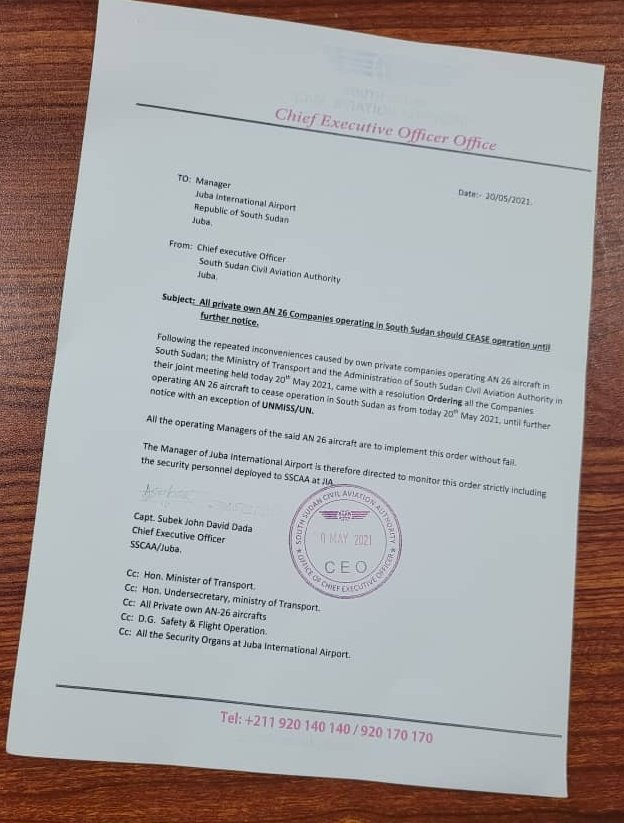 Aviation accidents are a regular occurrence in South Sudan and only two months ago did the chronically under-capacitated South Sudan Civil Aviation publicly announce a tightening of regulatory oversight. As a result of this latest safety incident has the regulator now banned the use of any Antonov 26 aircraft in South Sudan except those registered and flying under UN mandate.