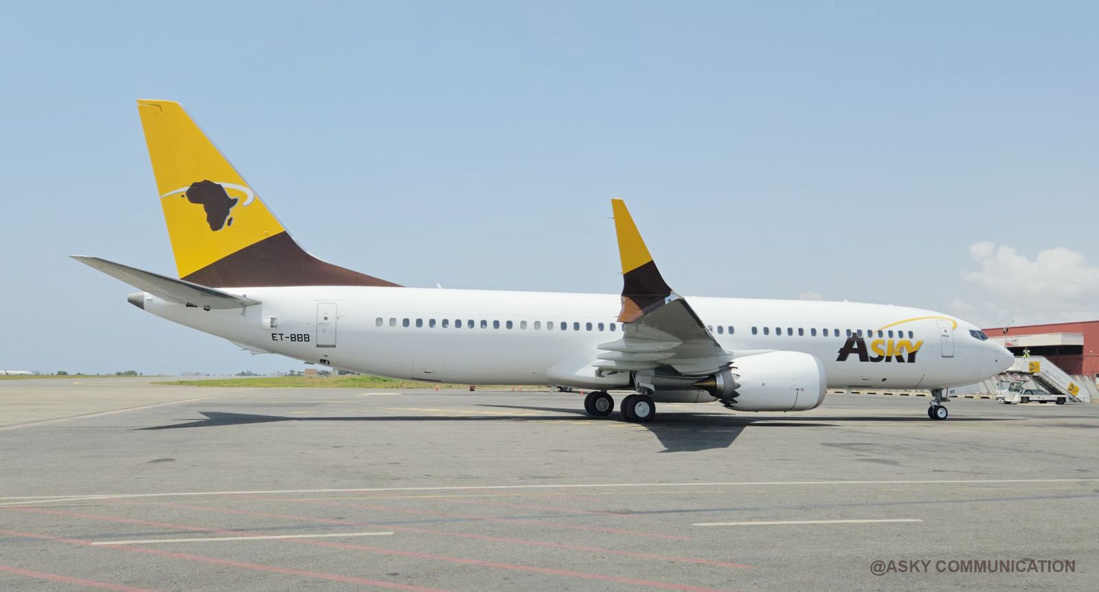 As part of its ongoing efforts to modernize and rejuvenate its fleet, Pan-African airline ASKY is proud to announce the arrival of a brand-new Boeing 737 MAX 8, registered as ET-BBB, on Tuesday, March 18, 2025. This next-generation aircraft, fresh from the factory, offers a seating capacity of 8 passengers in Business Class and 177 in Economy Class. It replaces the Boeing 737-700 NG, registered as ET-ANH, which retired from the ASKY fleet after 15 years of dedicated service.