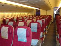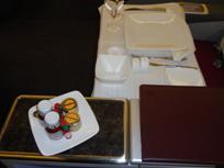 (Qatar Airways 2x2x2 flat bed business class seat in the B777, catering set up for those keen to try it out and then in comparison the 3x3x3 economy class seats, one seat less per row in each cabin compared to other airlines.)