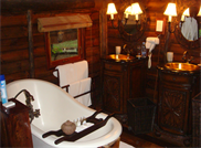 (A view of the tent and, behind the bed partition, the Victorian style bathroom)