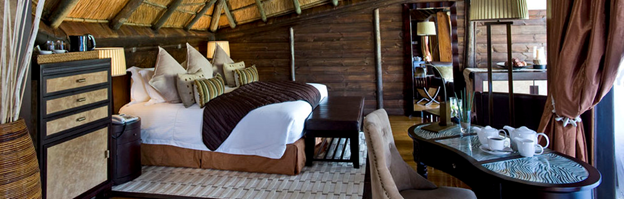 (A view of my chalet at the Mivumo River Lodge perched high above the river)