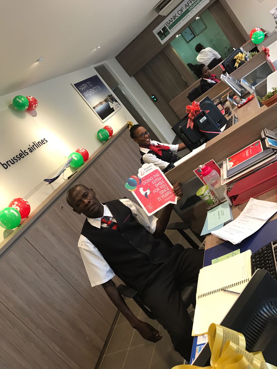 From this correspondent, and no doubt thousands of faithful travelers out of Uganda, happy birthday to the Brussels Airlines team shown above.
