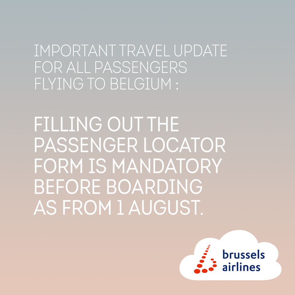 TRAVELING TO OR VIA BRUSSELS / BELGIUM? SUBMIT YOUR LOCATOR DETAILS 48 HRS BEFORE YOUR FLIGHT