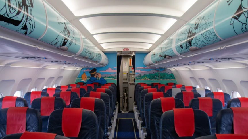 As the A320 aircraft ‘Rackham‘reached its repainting deadline, Moulinsart and Brussels Airlines agreed to prolong their partnership and restore the aircraft painting in its original state, meaning that Rackham will stay in the airline’s fleet for at least five more years. While the painting on the outside remains almost identical, the interior of the aircraft has been upgraded with more Tintin illustrations by the hand of Hergé.