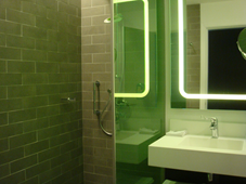 The bathrooms are well designed and for a hotel in this category best described as large. And, reminiscent of the mood lighting on modern aircraft like the Boeing B787 can the room lights around the bed also be changed by the touch of a finger on the bedside panel, something which may hopefully inspire what guests need inspiring for.