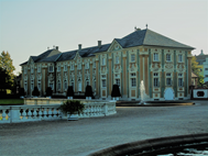 (The ‘Schoenborn Gymnasium’ where classical languages, values and topics were taught and which always understood itself to be the school for the elites – now nearly 264 years old and next to it a section of the ‘Water Chateaux, aka Belvedere’ and one of the many sculptures found in the park surrounding the buildings)