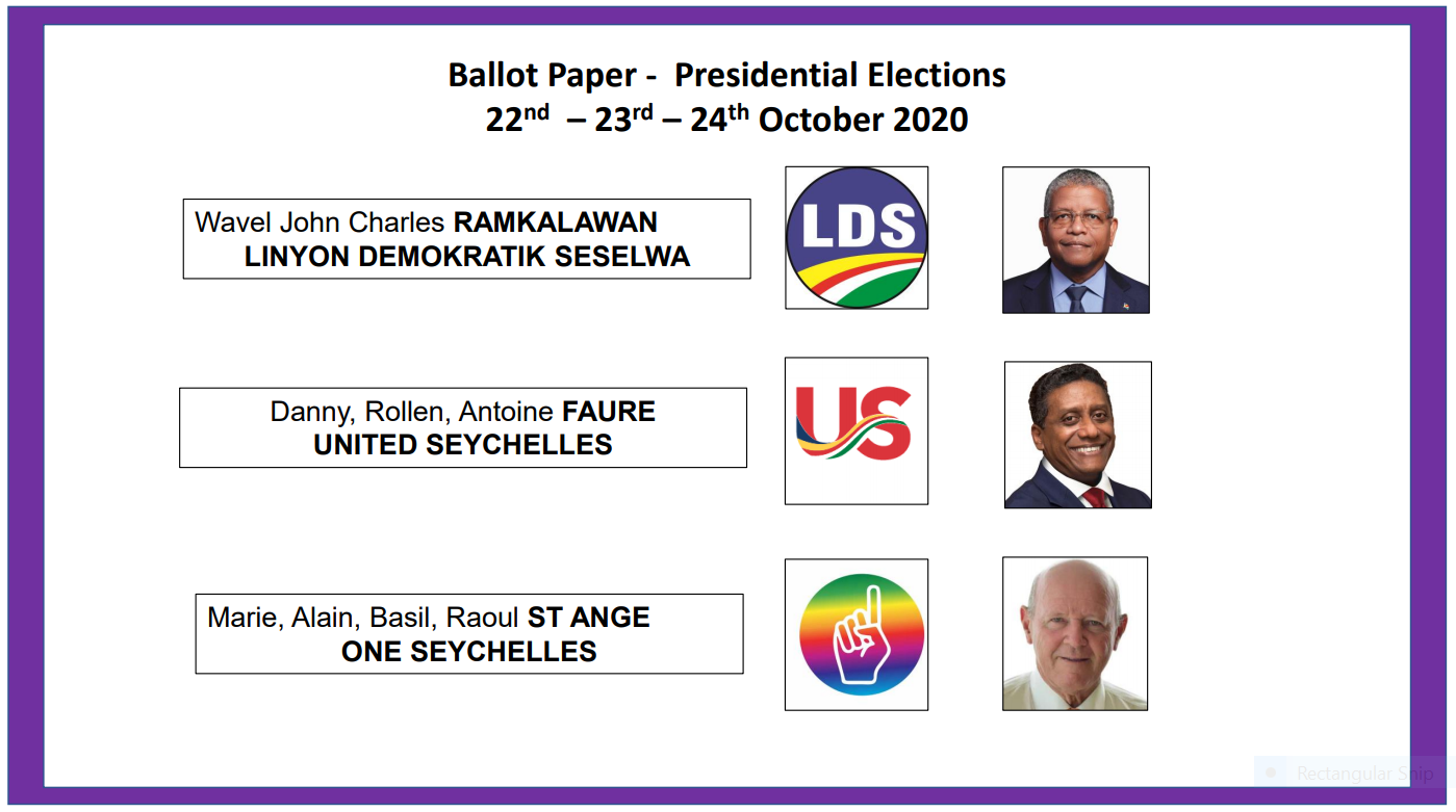 Although four candidates submitted their nomination documents, only three were successfully accepted. Mr. St.Ange, current President of the African Tourism Board, former Minster for Tourism, Culture, Ports & Marine, and a former popular Parliamentarian, is now in the Presidential race alongside veteran politician, Mr. Ramkalawan (who has been vying for the top job unsuccessfully for three decades) and outgoing President, Mr. Danny Faure (who is participating in his first ever presidential election). Mr. Patrick Pillay’s nomination was unfortunately not accepted, on account of “failure to satisfy legal requirements”.