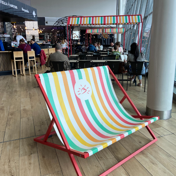 Brussels Airport has lots of fun in store this summer! Relax on our cozy summer terrace, snap selfies with our vibrant decorations, and join our photo contest. Watch football matches and Olympic games live, enjoy candy and ice cream from our cheerleaders, send digital postcards, and more. Come and enjoy a summer full of surprises and start your holiday at Brussels Airport!