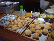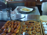 Notable was the food display changed from one side of the Seven Seas Restaurant to the other. Two active cooking stations were introduced, a carvery and a grill, the latter located outside one the the large sliding windows next to the fourteen chafing dishes, all laden with good food.