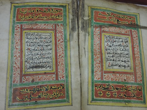 The introduction of Christianity in the 4th century AD transformed art – and life – in Ethiopia. From this period, the majority of paintings are religious and churches evolved as the artistic centres of the country. Highly stylised paintings of Bible stories in vivid colours became the norm. Angels are represented by winged heads; people have large almond-shaped eyes; non-Christians are seen from the side with only half a face. First producing illuminated manuscripts and ornamental Bibles, artists progressed to huge murals sweeping across the walls of churches.