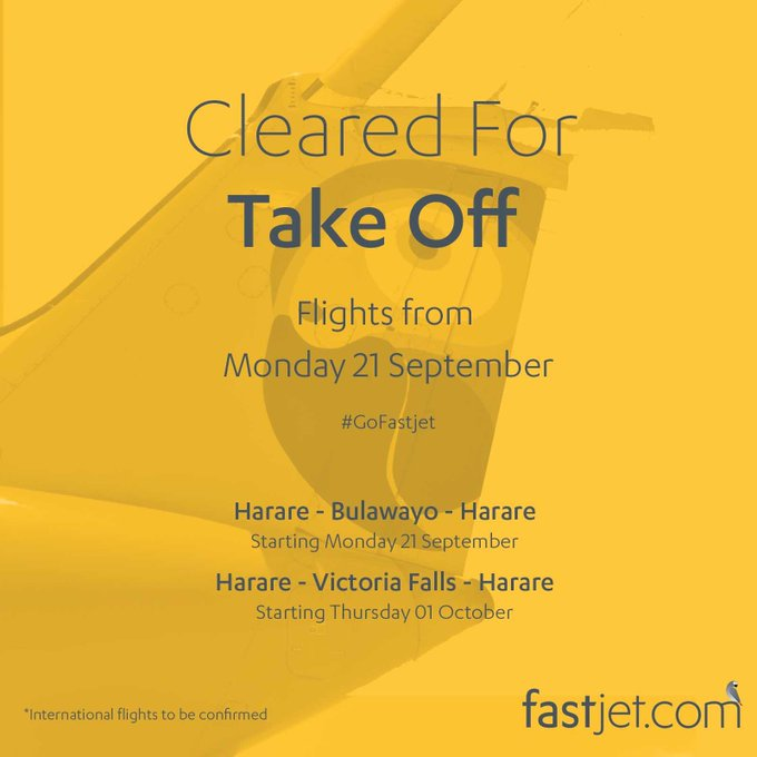Fastjet ZIMBABWE has now confirmed that their domestic flights will commence effective Monday, 21st of September 2020.