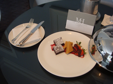We left the choices for the three course meal to the chef and he surprised us with a seafood risotto as a starter, followed by a strawberry sorbet before the main course, medallions of beef, was served by a very attentive dining room staff. Chocolate mouse, my post dinner poison of choice, concluded the meal with an offer of coffee, tea or digestives, if I even had a square inch of space left in my stomach.