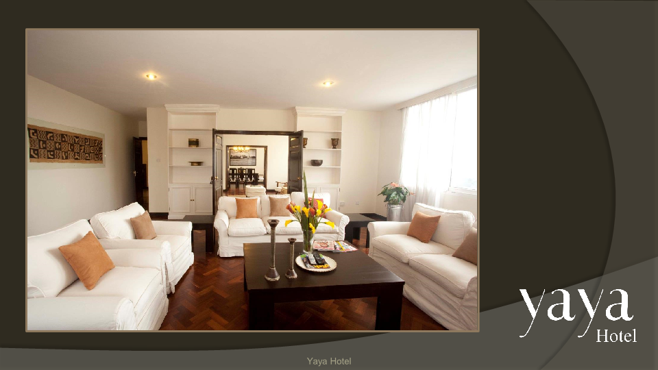 All the suites and apartments are fully fitted with luxury amenities to make guests feel at home, with separate bedroom, working and living spaces in the larger apartments. Satellite television, high speed internet connection, 24-hour reception service, ample parking, business services and full laundry services are just a few of the conveniences Yaya Hotel provides for guests. Additionally are on site security and surveillance systems – Yaya Towers operates over 100 CCTV cameras throughout the complex – ensuring guests safety and peace of mind at all times, not only at the hotel but also the parking garage and the extended shopping centre attached to Yaya Hotel.