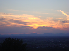 (An amazing sunset with the Pfaelzer Berge in the distance while from the other direction a spectacular moon rise with a partial eclipse caught the attention of my sister and I)