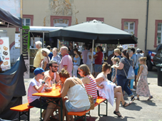 The temperatures in the high 20’s on the day brought out the crowds and sitting spaces were at a premium, as soon as one was getting up the seat on the benches taken by another. Needless to say that the festival was held at the Schloss too with the entire parking area converted to an open air food fiesta.