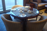 The furniture, both in the dining section and in the section where easy chairs and sofas dominate the setting, are well chosen and reflect the quality of the entire hotel in every aspect, and a lounge attendant is on duty to assist guests, concierge style, but also to clear tables or refill one’s tea cup.