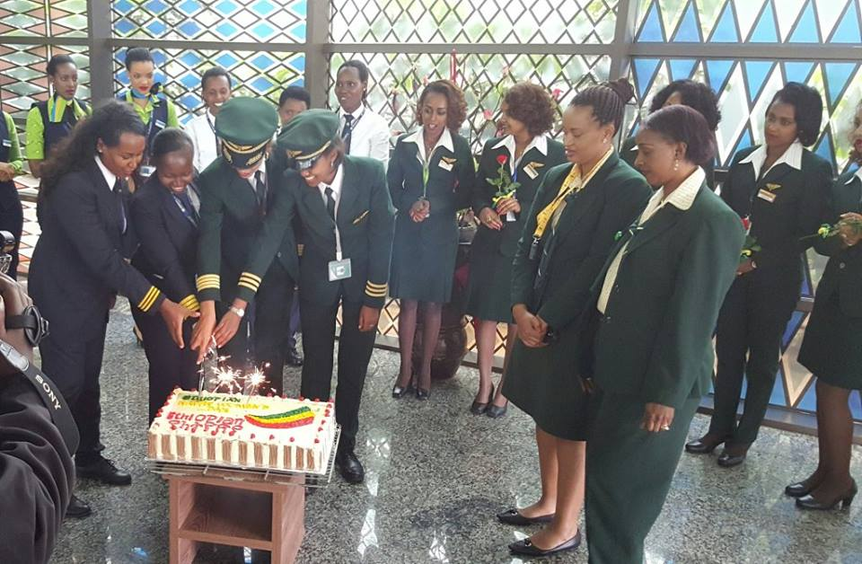 Two all female crews, one from RwandAir and the other from an incoming Ethiopian Airlines flight, cut a ceremonial cake at the airport lounge, not only celebrating their own achievements but also signalling the beginning of a much closer cooperation between the two airlines, which are said to be in the final stages of negotiating a major partnership deal.