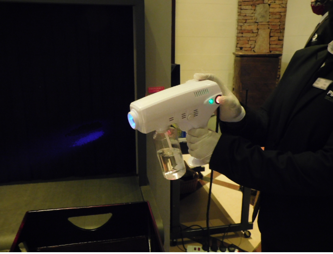 Items placed on the security scanner are also sanitized by the guards on duty, using a new spray gadget before going through the XRay machine.
