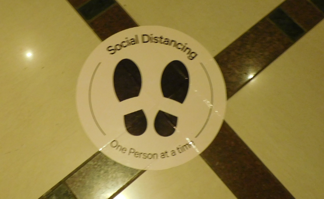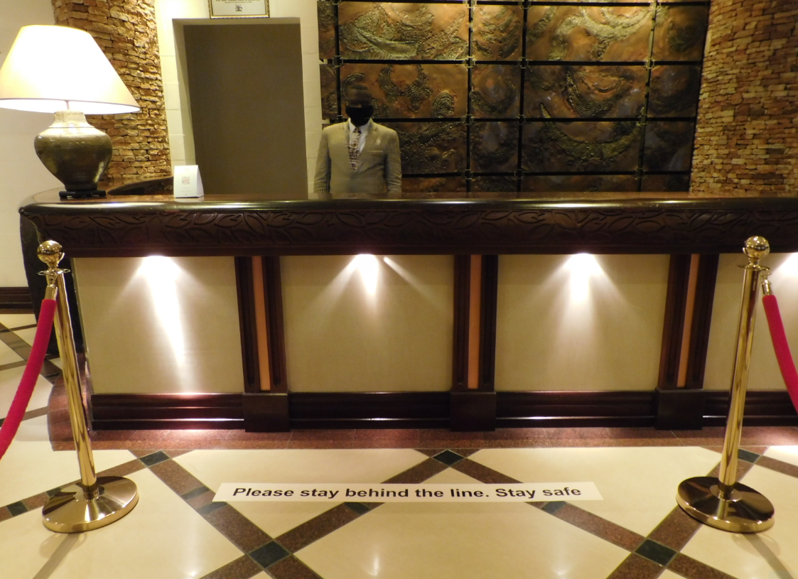 When the car pulls up at the main portico, will all handles and surfaces of suitcases and bags first be sanitized before the porters take the luggage indoors while guests, just minutes after sanitizing hands at the main security gate, are again asked to sanitize before they are guided through the rotating entrance doors – already showing the sign on the floor requiring physical distancing.