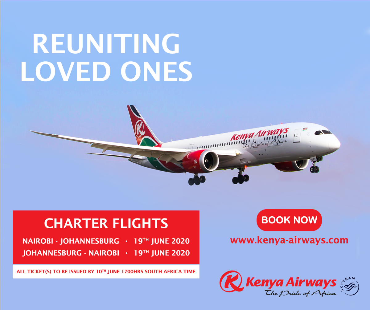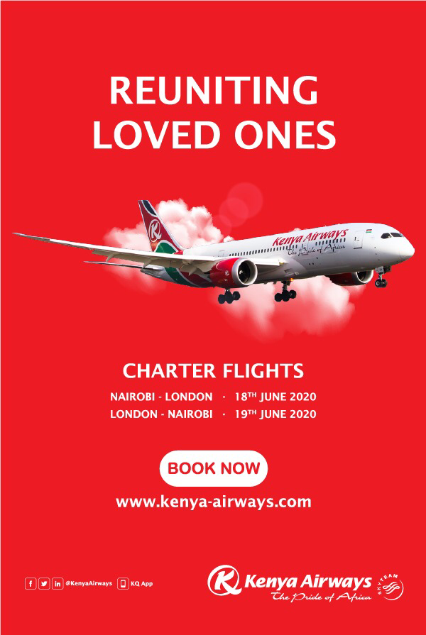 However has Kenya Airways now advertised two repatriation charter flights, one leaving Nairobi on the 18th of June to London Heathrow – where all passengers after arrival need to self quarantine for two weeks – and one on the 19th of June to Johannesburg.