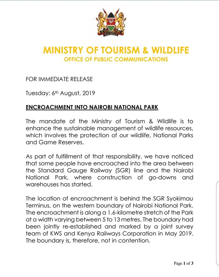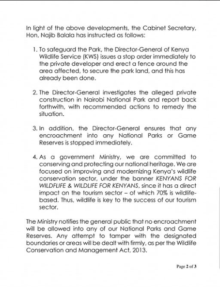 Their bold move however was soon spotted and reported and the Ministry of Tourism and Wildlife yesterday cracked the whip over them and directed the Kenya Wildlife Service that each and everyone found occupying national park land be served with orders to cease construction, vacate the land and begin the restoration of the illegally occupied plots to their former state.