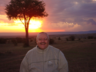 (Another spectacular sunset over the Masai Mara, showing a brewing thunderstorm in the distance as this correspondent enjoys a sundowner cup of tea in the company of the camp staff)