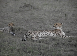 While not finding the elusive leopard this time, two are said to be frequenting the camp neighbourhood on a regular basis, we were not disappointed to find two other cats, lions and cheetahs. The camp staff told the tale of three prides of lions making the Olare Conservancy their home, with previously some 56 males, females and adolescents and after the birth of the two under tent two, that number has gone up to 58. Cheetahs are much less in numbers of course but we nevertheless spotted a female with a young cub, taking a nap of sorts and once in a while raising their heads, seemingly unaware that we had just passed a lioness on the prowl less than half a kilometer away.