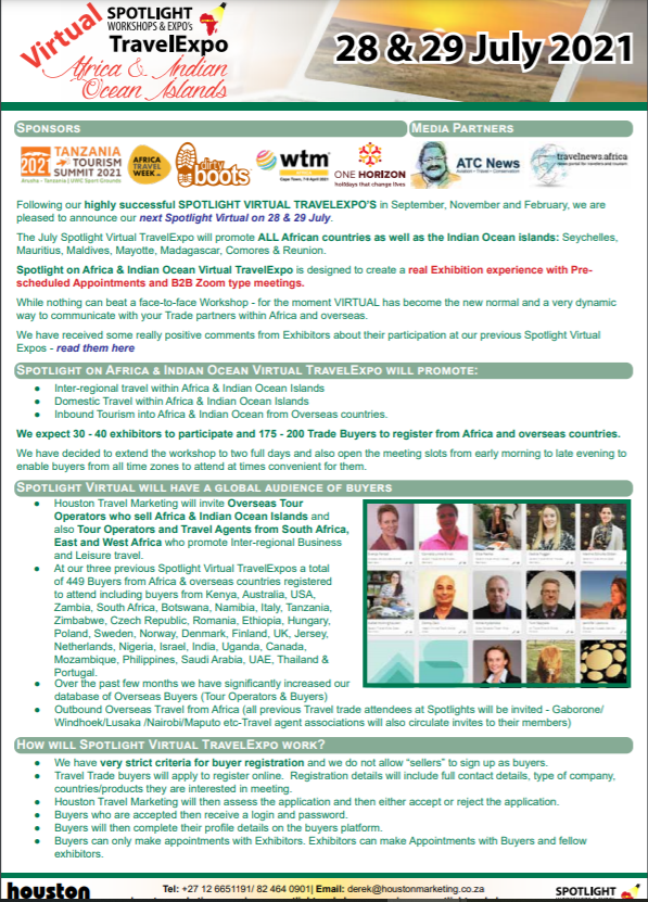 Our live face to face Workshops take place in Dar es Salaam on 05 July and Nairobi on 08 & 09 July….and for those who are unable to travel we are also organising a Spotlight on Africa Virtual expo on 28 & 29 July (see info attached)