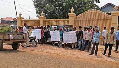 Preah Rokar community members demonstrate in front of the provincial Forestry Administration yesterday. PON LOK KHMER http://www.phnompenhpost.com/p-vihear-families-call-govt-stop-logger