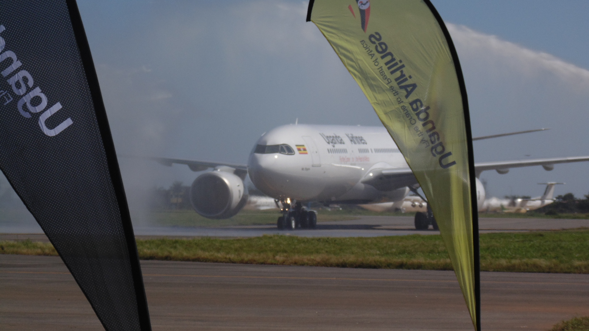 Ugandans lined the runway perimeter fences and crammed into other viewpoints giving them clear sight of the airport’s runway, taxiway and parking apron, as 5X-NIL, an Airbus A330-800Neo named Mt. Elgon first performed a low altitude fly-over before landing at Entebbe International Airport.