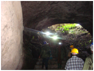 One of the two attractions, still not open to the public though – the formal launch is expected to take place soon – are the Musanze Caves, an underground formation caused by a volcanic eruption millions of years ago, long known by the locals but only more recently ‘discovered’ as a tourism attraction and being readied for a regular stream of visitors. In fact several tube caves have been discovered in the wider area of Musanze, but this one, easily accessible from the main Gisenyi – Musanze highway and with just about 2 km in length, was found to be eminently suitable to ‘convert’ into a tourism site. On arrival do visitors find all the necessary gear to put on, from gum boots to waterproof jackets and the quintessential helmet and a safety briefing by the guides is mandatory, as no unaccompanied entrance into the caves is permitted and the do’s and don’ts must be understood before embarking on the descent to the cave mouth and the walk through to the exit.