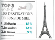 At the same time did details emerge from the 2014 survey results of ‘Mariee’, one of France’s leading bridal magazines, where Reunion came a respectable third with 9 percent of the votes cast, after two fellow Vanilla Island members, Mauritius with 15 percent and the Maldives with 13 percent.