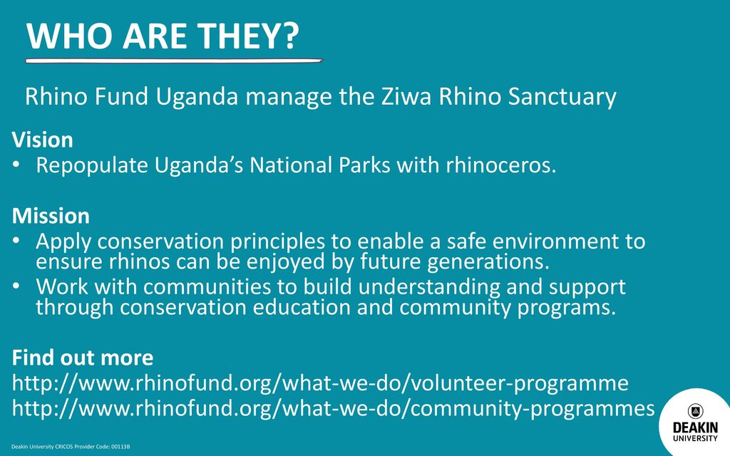Sincere thanks go to His Excellency the President, his staff, the Ministry of Tourism, Wildlife and Antiquities, Uganda Wildlife Authority, Nakasongola District Local Government and Stakeholders for assisting in mediating this matter and securing the future of Uganda’s rhinos