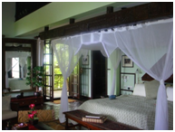 The residence certainly brings out this perfect blend and matches the venerable and the antique with the glass and marble in bathrooms which could have come from a modern city hotel, but for the personal touches of flowers, toiletry containers, the mirror frames, the bowls for flower petals and the incense burners. It all gives a guest here the sense of being at home, well almost for most, as the weather outside of course is vastly different from the one where most come from, Europe in Winter or America in Fall, marked by cold rain and clinging fog, iced over windscreens and the need to dress up warm as the last leaves are blown off the trees by the winter storms.