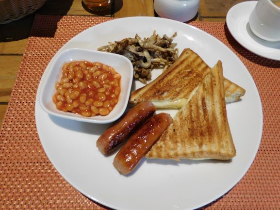 I opted for the fruit platter, well presented and always a good starter for the morning meal, before venturing towards a crispy toast – this version with Cinnamon Scented Creme Cheese. I substituted the grilled jackfruit against some sausages, baked beans and mushrooms and was not disappointed. Crispy it was and the taste was, well, how to put it best, intriguing on the positive side.