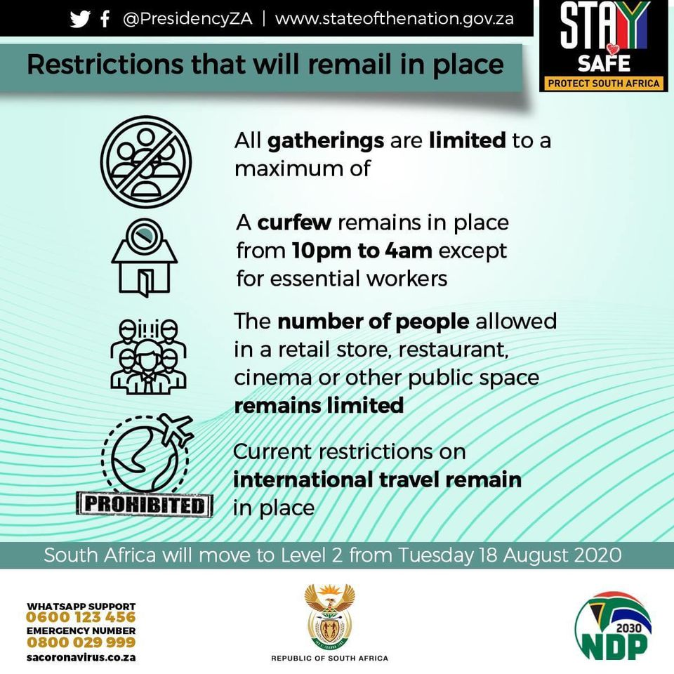 The South African government has moved the country to level 2 of their multi level #COVID19 response, finally allowing travel between provinces again and also opening up other services which in the past were not permitted.