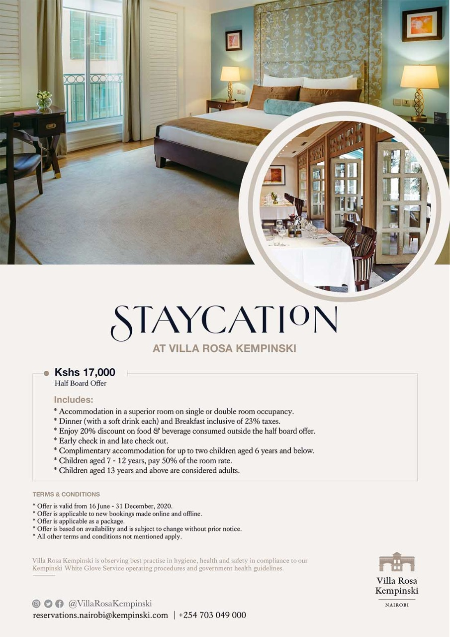 In Kenya has, what is arguably Nairobi’s best hotel, the Villa Rosa Kempinski launched a ‘Staycation‘ offer while in Kampala, notably, the small but beautiful Le Petit Village Boutique Hotel was first out of the starting blocks to advertise staycations – combined with a generous rebate for guests having their dinner at the Le Chateau | Brasserie Belge.