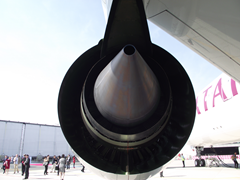 (The new Rolls Royce Trent XWB Engine under the wing of the Airbus A350XWB)
