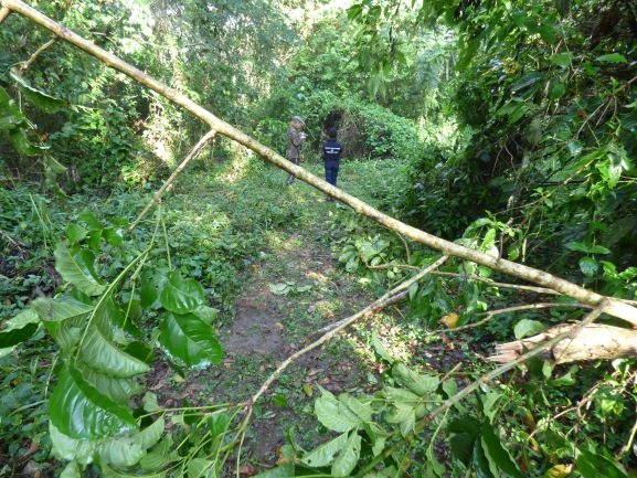 I don’t see the elephant (on the National Park side of the trench, perhaps a few hundred metres away) but we too close for comfort. I head back on my heels. Clearly there is at least one elephant still around.
