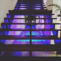 As you climb up the warm local hardwood suspended staircase, which allows an uninterrupted view of the indoor infinity pool below that changes color at night, you get to a room with a sign that declares the importance of health, as well as the hygiene measures taken by the hotel for each room. The door opens to a lushly tactile concrete screed and glass bathroom on the left and a pure white bedroom ahead with a raised concrete slab for a bed, with a mattress so soft as to wonder if it was made of feathers. The pillows and duvet were definitely duck down feathers. The overall feeling was one of strong soft security as you slept. A large painting of a young deadlocked African maiden in full jeweled regalia that dominated the headboard wall, reminded me of me, as we had pretty much the same hairstyle and jewelry. Not that I am a maiden but we will skip that part…