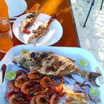Later, as I followed Safi, a deep voiced Rastaman who camouflages his kind heart with a straight face, from Visiwa down the beach to his little seafood restaurant on my last day, we commiserated on the state of the local economy due to the COVID lockdown, as at the time the president was contemplating another locking of county borders. But the feast of grilled lobster, kalamari, prawns and fish that was spread before me as I arrived drove all thoughts of doom and gloom from my head and for one perfectly gluttonous moment, the aura was pink and the palms fronts decorating the restaurant shade on the edge of the clear water shimmied their appreciation on my behalf. The video below will prove that I am not exaggerating. If I was so inclined, I would think Visiwa Beach resort and also neighboring Safi’s Ocean Breeze restaurant, would be perfect for a simple beach wedding…