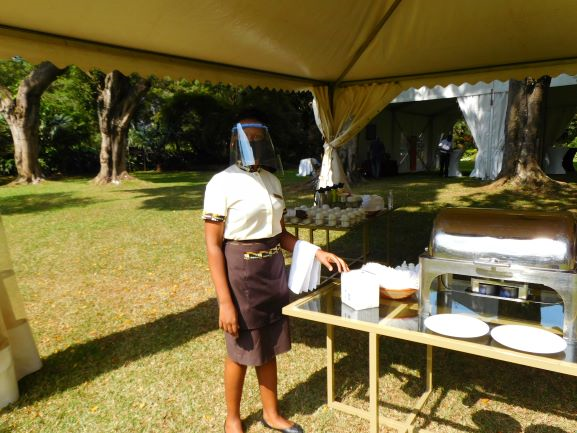 Staff attached to both indoor and outdoor events, besides their face masks also have to wear face shields to give them maximum protection and food on offer is now served by a member of staff as guests are no longer allowed to use utensils like spoon or tongs and, as was the case in past, serve themselves.