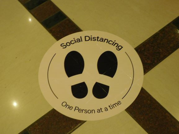At the Ssese Cake Shop but also other locations, are physical distancing reminders displayed on the floor and across the hotel are sanitizers available for both staff and guests.